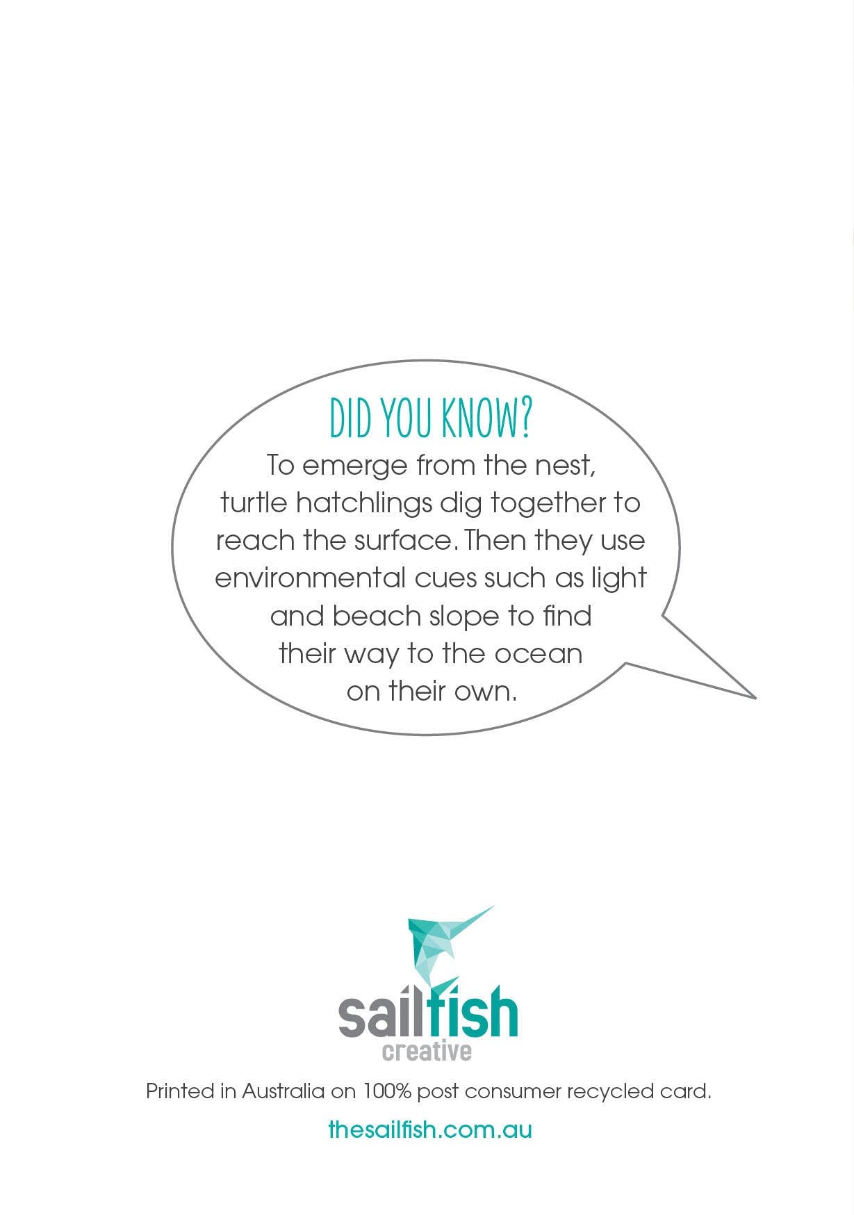 Australian made greeting cards by Sailfish Creative. Each card has a fun fact on the back of the card....